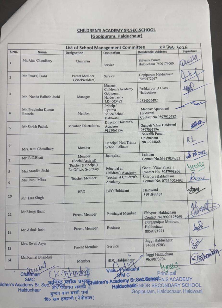 Children's Academy prides itself in offering the best that current generation of Education can offer. To bring out the best out of every child, it is our duty to ensure that we have set up a well experienced Management Committee which actively looks into all aspects of the school functioning.